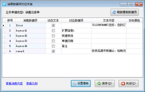 2、業(yè)務(wù)消息模板設(shè)置