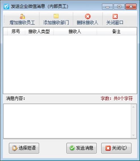 在功能導航窗“擴展應用”-》“發送微信消息”,可以直接發送企業微信消息給部門或員工,消息內容不受限制。
