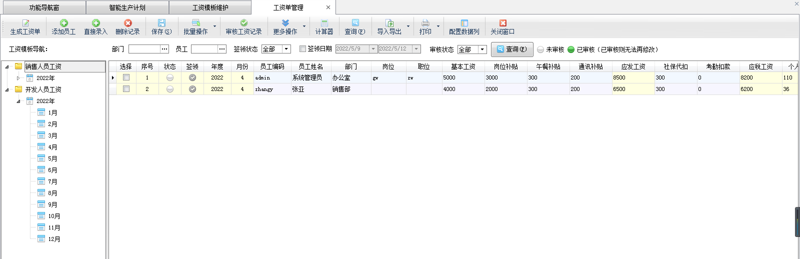 審核工資單:選擇工資記錄后,點(diǎn)擊“審核工資單”按鈕,可以審核相應(yīng)的工資記錄。