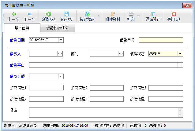 ????點(diǎn)擊“新增”按鈕可以在當(dāng)前信息保存后不關(guān)閉窗口直接錄入下一個(gè)新的借款單。