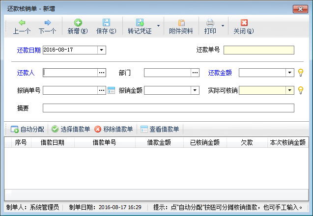 注:還款單管理可以增加費(fèi)用報(bào)銷單來進(jìn)行統(tǒng)一管理。
