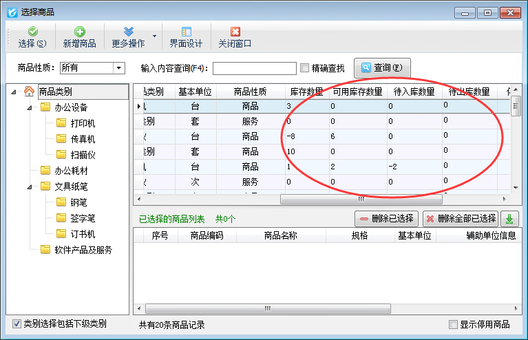 (6)在單據中點“添加明細”時彈出商品選擇窗口