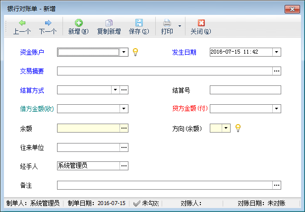 余額:當前帳戶的剩余金額。系統自動匯總,不允許修改。