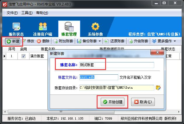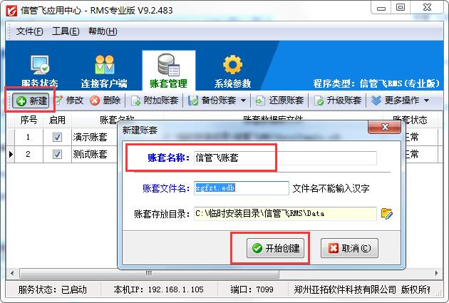 ????賬套即賬套數據庫,這是一個會計業務引申出來的概念,賬套數據庫中存儲業務數據。使用軟件之前建議新增加一個賬套,用于重新錄入和管理數據,信管飛RMS(星光版、標準版、專業版)、信管飛倉庫管理軟件、信管飛出納記賬軟件、信管飛送貨單軟件、信管飛票據打印軟件等軟件的賬套都是在主機電腦的應用中心程序上集中管理的,下面我們以信管飛RMS專業版為例詳細介紹下在使用軟件之前如何新增加一個賬套?