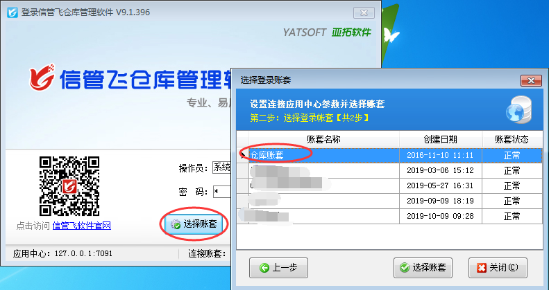 ????運行信管飛倉庫管理軟件客戶端(藍色圖標),在軟件登錄界面點擊“選擇賬套”,在“選擇登錄賬套”界面選擇我們所需要的賬套,然后登錄軟件即可。