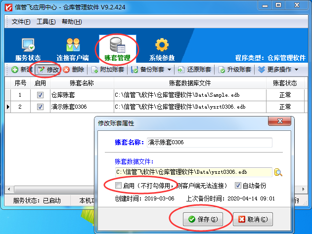 # 6.17.12 倉庫管理軟件如何停用賬套?