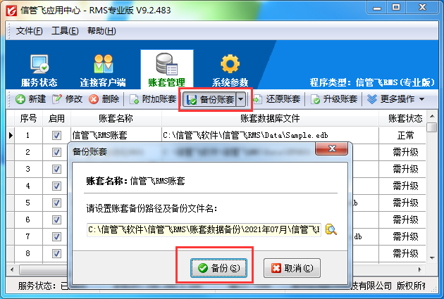 ????一、在信管飛RMS應用中心中如何對賬套進行備份?