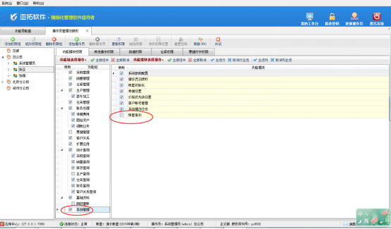 ????③如果操作員有“賬套備份”的相應權限,那么可以在客戶端中進行備份賬套操作,如果操作員沒有“賬套備份”的相應權限,則不能在客戶端中對賬套進行備份操作(操作員權限可以在功能導航窗點擊“系統管理”——“操作員及授權”中設置),如下圖所示。