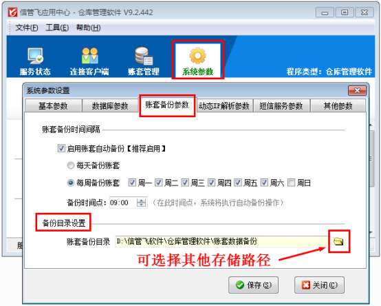 # 6.17.18 倉庫管理軟件如何修改賬套備份目錄?