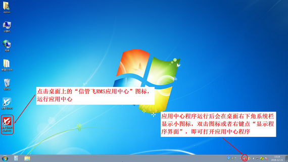 ????打開信管飛RMS應用中心(電腦桌面右下角紅色的圖標)即可進入信管飛RMS應用中心界面,如圖所示: