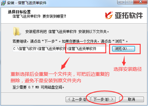 ????可把安裝程序包直接下載到桌面,安裝前需要退出應用中心程序(桌面右下角紅色圖標),雙擊打開安裝程序,選擇瀏覽按鈕選擇和之前安裝路徑一致的位置進行覆蓋安裝。(點擊“瀏覽”按鈕重新選擇路徑后會重復一個安裝名稱,把后邊重復的刪除下,避免安裝在新文件夾。)如下圖所示: