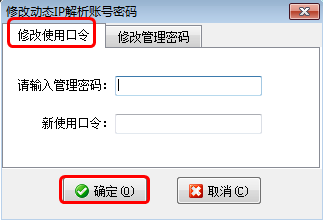 ????在修改密碼窗口,點擊“修改管理密碼”頁面,輸入當前密碼、新密碼、確認新密碼后,點擊“確定”按鈕,就可以修改動態IP解析服務的管理密碼。如下圖所示: