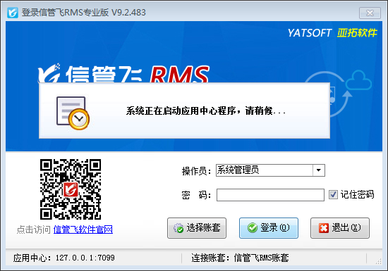 ????以信管飛RMS為例示范下,直接打開客戶端程序,會提示“系統正在啟用應用中心程序,請稍后...”如下圖所示:
