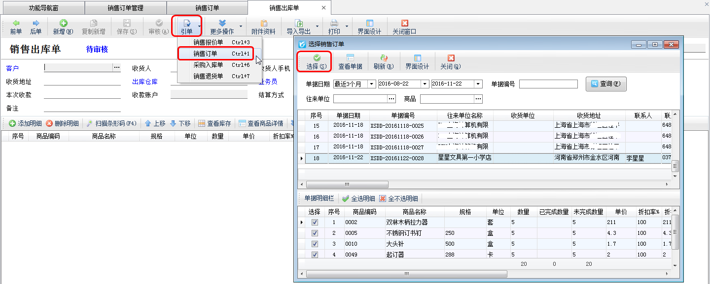 ????銷售單列表中批量審核功能和采購單列表一致,不再贅述。