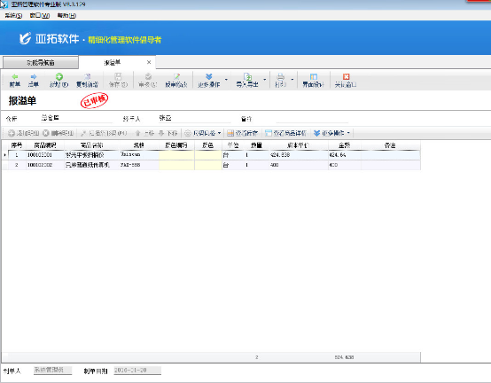 ????亞拓管理軟件星光版、標準版、專業版都支持在開采購訂單時直接引用銷售訂單明細數據,以專業版軟件為例,開采購訂單時如何直接引用銷售訂單明細數據?首先我們先開一個銷售訂單,保存并審核,如下圖所示: