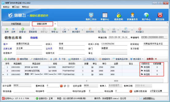 ????倉庫掃碼功能,使工作將快捷高效,接收入庫和出庫的數(shù)據(jù)通過無線設(shè)備輕松導(dǎo)入進銷存軟件中,節(jié)約了前后數(shù)據(jù)的校對和錄入的工作量,從本質(zhì)上提高工作效率。本篇文章以“信管飛RMS專業(yè)版的銷售出庫單”為例,示范下如何對接開單和倉庫掃碼確認(文章按掃描條形碼示范)。