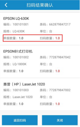 ????點擊掃碼完成會彈出掃碼確認界面,可確認開單數(shù)量和掃碼數(shù)量是否一致