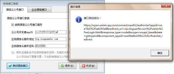 ????在功能導(dǎo)航窗選擇“擴(kuò)展應(yīng)用”—》“微信參數(shù)設(shè)置”,選擇“微信公眾號接口”,啟用并配置相關(guān)設(shè)置。然后點(diǎn)擊測試微信接口。如下圖所示: