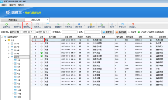 ????信管飛RMS標(biāo)準(zhǔn)版和專業(yè)版都包括登記出納日記賬憑證功能,在新增保存日記賬憑證后都可以直接審核憑證,憑證審核后,不允許直接刪除??蛻羧绻枰獎h除已審核的憑證,需要先反審憑證,再進(jìn)行刪除。下面我們介紹一下在信管飛RMS專業(yè)版中如何刪除已審核的日記賬憑證?