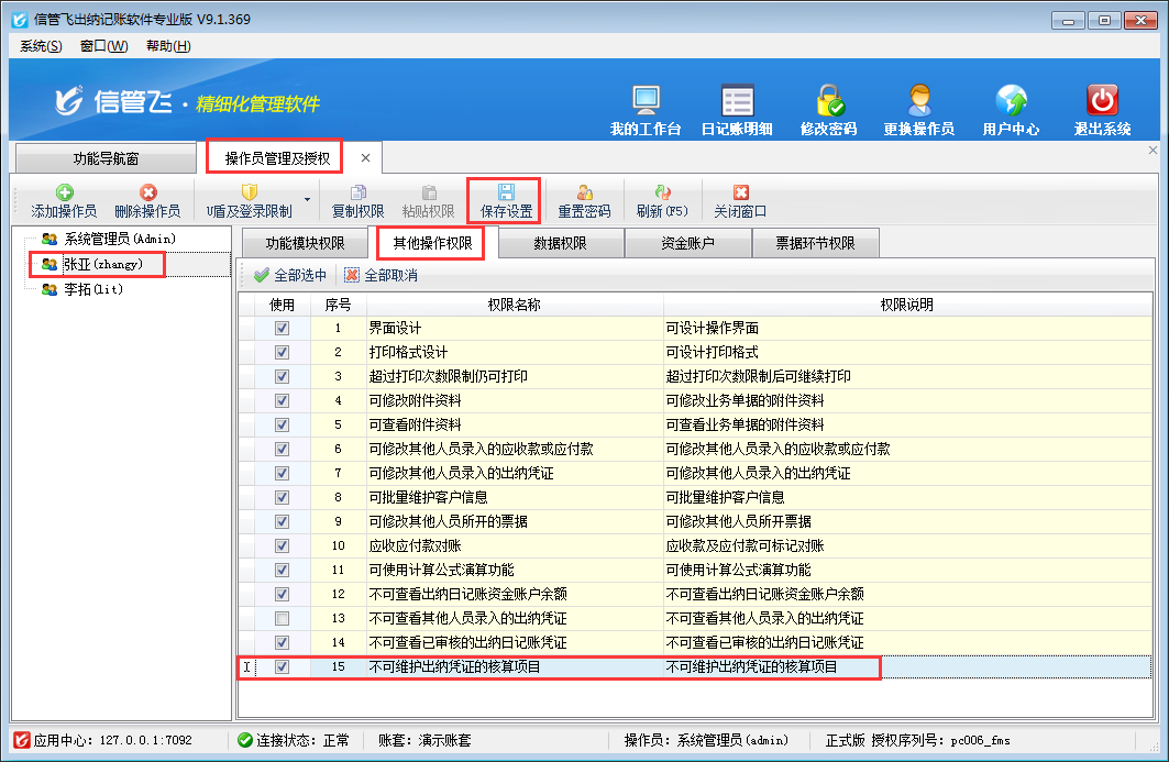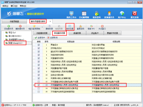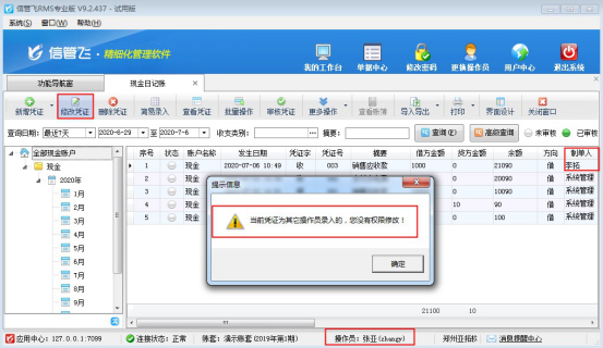# 6.4.7 信管飛RMS軟件如何設(shè)置操作員不可修改其他人員所開的出納憑證?