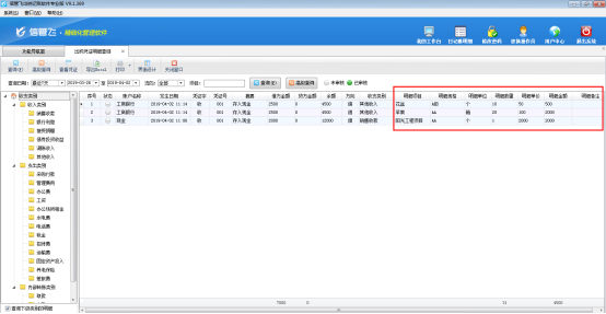 ????信管飛出納記賬軟件、信管飛RMS標(biāo)準(zhǔn)版和專業(yè)版在新增出納憑證時都支持錄入憑證明細(xì),方便用戶錄入每個憑證的明細(xì)內(nèi)容(系統(tǒng)默認(rèn)沒有啟用憑證明細(xì)功能,啟用方法請參考:出納憑證如何啟用憑證明細(xì)功能?),軟件支持對憑證明細(xì)進(jìn)行查詢統(tǒng)計,本篇文章以信管飛RMS專業(yè)版為例詳細(xì)介紹一下如何查詢出納憑證明細(xì)。