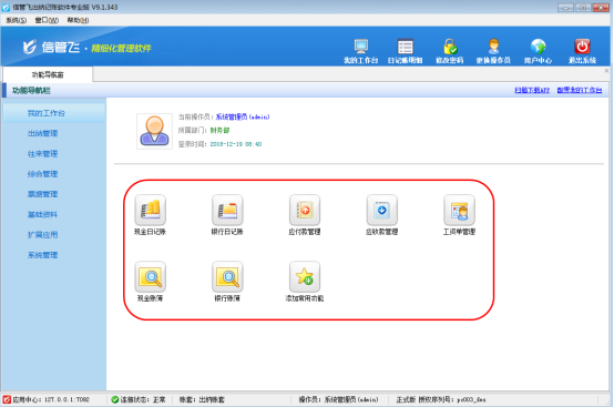 ????信管飛出納記賬軟件是一款針對各類企事業(yè)單位財務(wù)出納記賬開發(fā)的,集現(xiàn)金日記賬記賬與點(diǎn)驗(yàn)、銀行日記賬記賬與核帳、應(yīng)收應(yīng)付往來賬管理、票據(jù)管理(支票管理、承兌匯票管理)、發(fā)票管理、工資管理、員工借款管理、費(fèi)用報銷管理等為一體的財務(wù)出納管理記賬軟件。