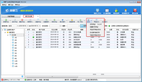 ????紅管家出納記賬軟件標(biāo)準(zhǔn)版和專業(yè)版在新增保存日記賬憑證后都可以直接打印憑證,軟件還支持批量打印憑證,如果您每天錄單數(shù)量較多,為了節(jié)省寶貴時間提高工作效率,您可以使用批量打印功能。下面我們介紹一下在紅管家出納記賬軟件專業(yè)版中批量打印銀行日記賬憑證的具體的操作步驟。