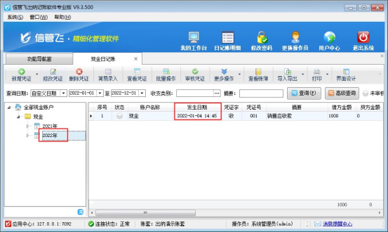 ????軟件支持一直記錄資金賬戶的憑證信息,數(shù)據(jù)自動保存,有客戶需要登記新一年日記賬時,打開界面不顯示2022年,不清楚如何顯示出來,本文示范下如何操作?