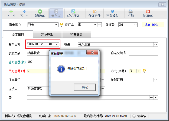 ????出納記賬軟件登記日記賬憑證時,發(fā)生日期默認(rèn)取電腦操作系統(tǒng)日期,另外如需要補(bǔ)錄出納憑證,系統(tǒng)也支持修改日記賬憑證的發(fā)生日期進(jìn)行補(bǔ)錄出納憑證,部分用戶在修改完日記賬發(fā)生日期保存憑證時可能會出現(xiàn)“您錄入的發(fā)生日期小于賬期的起始日期,請修改后再保存!”的提示,這是因?yàn)樵搼{證錄入的發(fā)生日期小于該賬戶賬期的起始日期導(dǎo)致的。本篇文章介紹一下該如何解決這個問題。