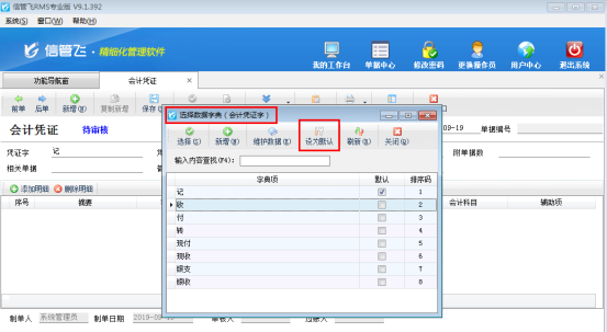 # 6.5.1 信管飛RMS會計憑證如何設置默認憑證字?