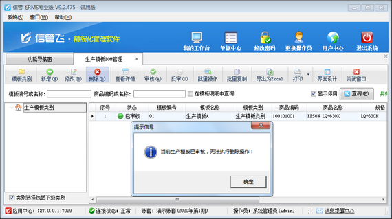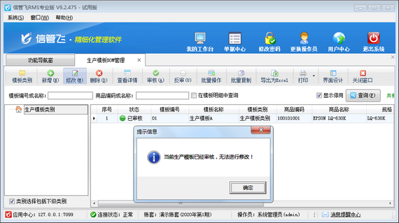 # 6.6.1 進銷存管理軟件如何修改(刪除)已審核的生產模板?