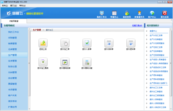 ????實際的企業生產業務中經常會涉及委外代加工業務,有時候需要委托外部工廠幫我們生產一些配件,有時候需要幫忙生成半成品,然后委外生產的成品或半成品,再進入我們車間進行再加工(如包裝封箱、或二次加工等)。信管飛RMS標準版、專業版及以上版本可以購買 “委外加工管理”擴展功能模塊來管理此業務。