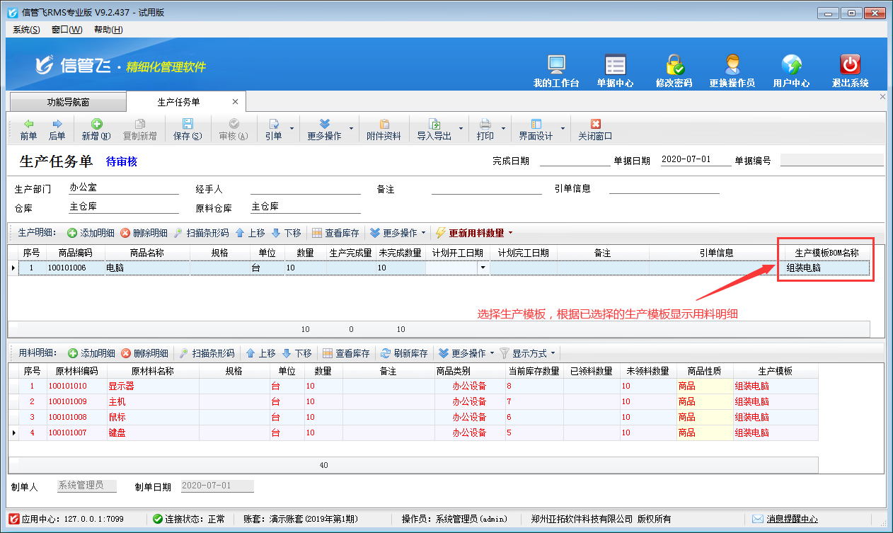 # 6.6.11 進銷存軟件中生產模板的使用方法