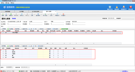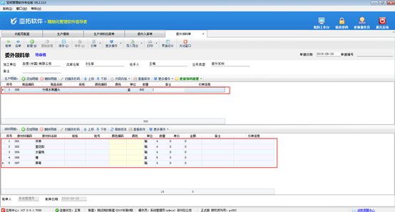 ????(2)當需要加工廠進行加工時,開“委外加工單”錄入加工任務,軟件會根據生產模板自動算出需要的原材料明細。