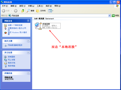 ②在“網絡連接”的界面,如圖4所示,雙擊“本地連接”,會出現如圖5所示的“本地連接狀態”的界面,點擊“支持”,點擊“詳細信息”按鈕會出現網絡連接的信息,如圖6所示,此時記下“IP地址”、“子網掩碼”、“默認網關”和“DNS服務器”的信息,后面固定IP地址時需要用到。
