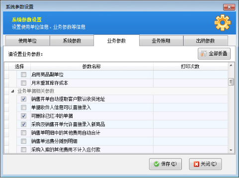 軟件中默認(rèn)是不允許開(kāi)單時(shí)直接錄入新商品的,所以需要我們?cè)谑褂么斯δ苤皩?duì)相應(yīng)的業(yè)務(wù)參數(shù)進(jìn)行設(shè)置。在業(yè)務(wù)參數(shù)界面上我們將“采購(gòu)及銷售開(kāi)單允許直接錄入新商品”勾選上,然后進(jìn)行保存。