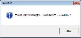 如果當前票據模板已被使用(用此模板開過票據),系統提示如下圖所示,票據模板就不能被刪除。