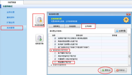 【提示】如果商品信息不需要填寫商品編碼,則在系統(tǒng)參數(shù)中把此參數(shù)勾選掉保存即可。