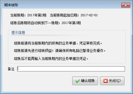 4、結賬后不能再輸入當前賬期內的業務單據及會計憑證。