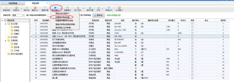 在功能導航窗點擊“基礎資料”—“商品信息”打開商品信息主界面,在商品信息界面點擊“更多操作”—“批量維護商品信息”按鈕可以打開批量維護商品信息界面,如下圖所示。