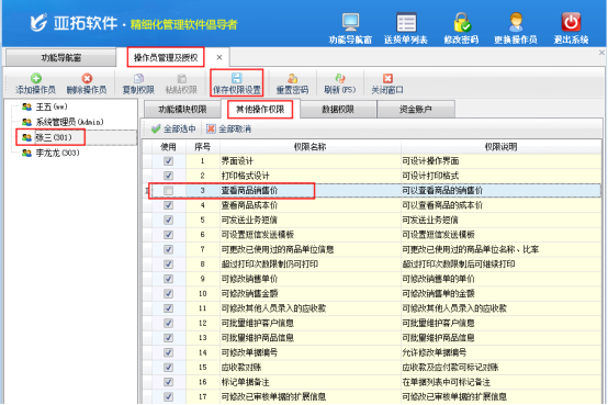 “可查看商品銷售價”權(quán)限是版本V8.5.211增加的功能,如需使用此功能,可在官網(wǎng)上下載此版本及以上版本升級覆蓋安裝軟件即可。
