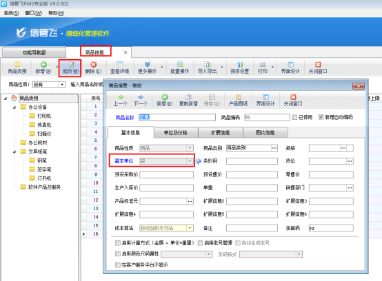 信管飛RMS(標準版和專業(yè)版)、信管飛送貨單軟件、信管飛倉庫管理軟件等都支持客戶自己維護商品信息,商品的基本單位可直接在維護商品信息的時候填寫好。在開單使用商品信息后,再對商品基本單位進行修改時,商品的基本單位是鎖定狀態(tài),為了更加自定義商品單位,軟件支持修改已使用商品的基本單位。以信管飛RMS專業(yè)版為例,我們介紹一下如何修改已使用商品的基本單位。