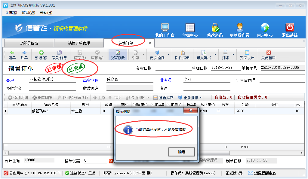 信管飛RMS、信管飛送貨單軟件內都支持設置已發貨的銷售訂單不可進行修改、紅沖操作,本篇文章以信管飛RMS為例詳細介紹一下如何設置已發貨的訂單不可修改不可紅沖?