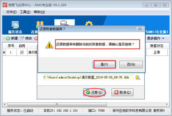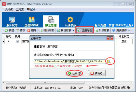 本文以“信管飛RMS軟件”為例,示范如何還原備份賬套數(shù)據(jù)。