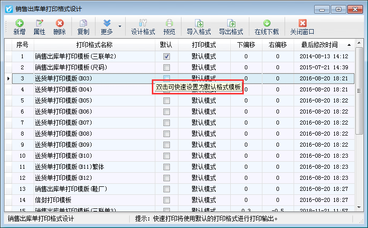 以上三種方式任選一種都可以設(shè)置常用模板為默認(rèn)打印格式模板。