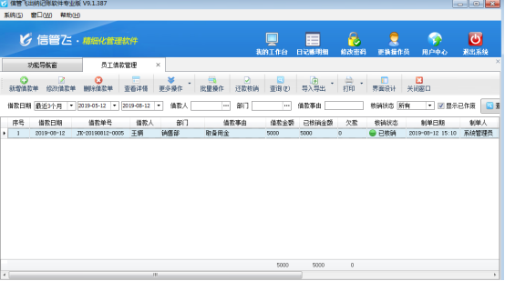 歡迎免費(fèi)下載試用這款可以管理員工借款的記賬軟件:信管飛出納記賬