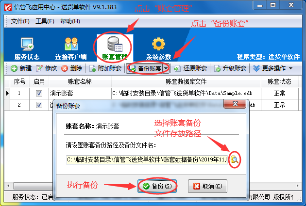 二、在信管飛送貨單軟件客戶端程序中執行賬套備份