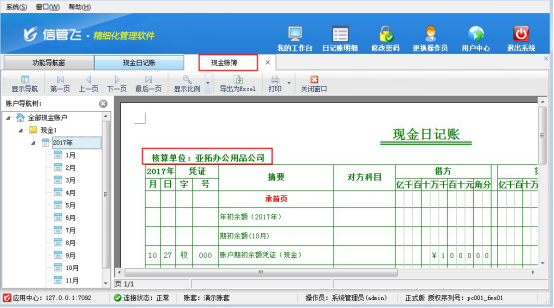 歡迎下載試用可打印現金賬簿的出納軟件信管飛出納記賬軟件。
