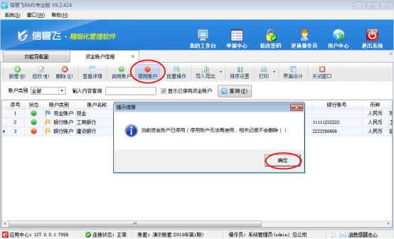 信管飛RMS標(biāo)準(zhǔn)版和專業(yè)版含有出納管理模塊,可以維護(hù)多個(gè)資金賬戶(現(xiàn)金賬戶與銀行賬戶),可以清清楚楚記錄每個(gè)賬戶的日常流水賬,實(shí)際業(yè)務(wù)需求中可能會(huì)出現(xiàn)資金賬戶變動(dòng),需要停用之前賬戶及設(shè)置在出納日記賬中不顯示此賬戶,下面我們以信管飛RMS專業(yè)版為例介紹一下如何停用資金賬戶并將已停用的資金賬戶設(shè)置為不顯示?