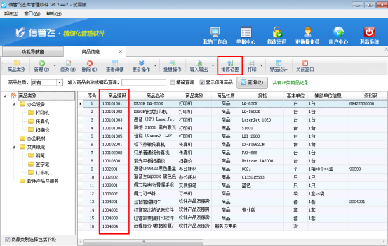 信管飛送貨單軟件、信管飛倉庫管理軟件、信管飛RMS(進(jìn)銷存一體化軟件)開單時都可以直接從商品信息中選擇已有的商品進(jìn)行快速開單,軟件都支持對商品信息進(jìn)行排序。開單添加明細(xì)時彈出的“選擇商品”窗口中商品信息顯示的先后順序如果需要調(diào)整,可以到商品信息中調(diào)整。下面我們以信管飛倉庫管理軟件為例介紹一下對商品信息排序的操作方法。